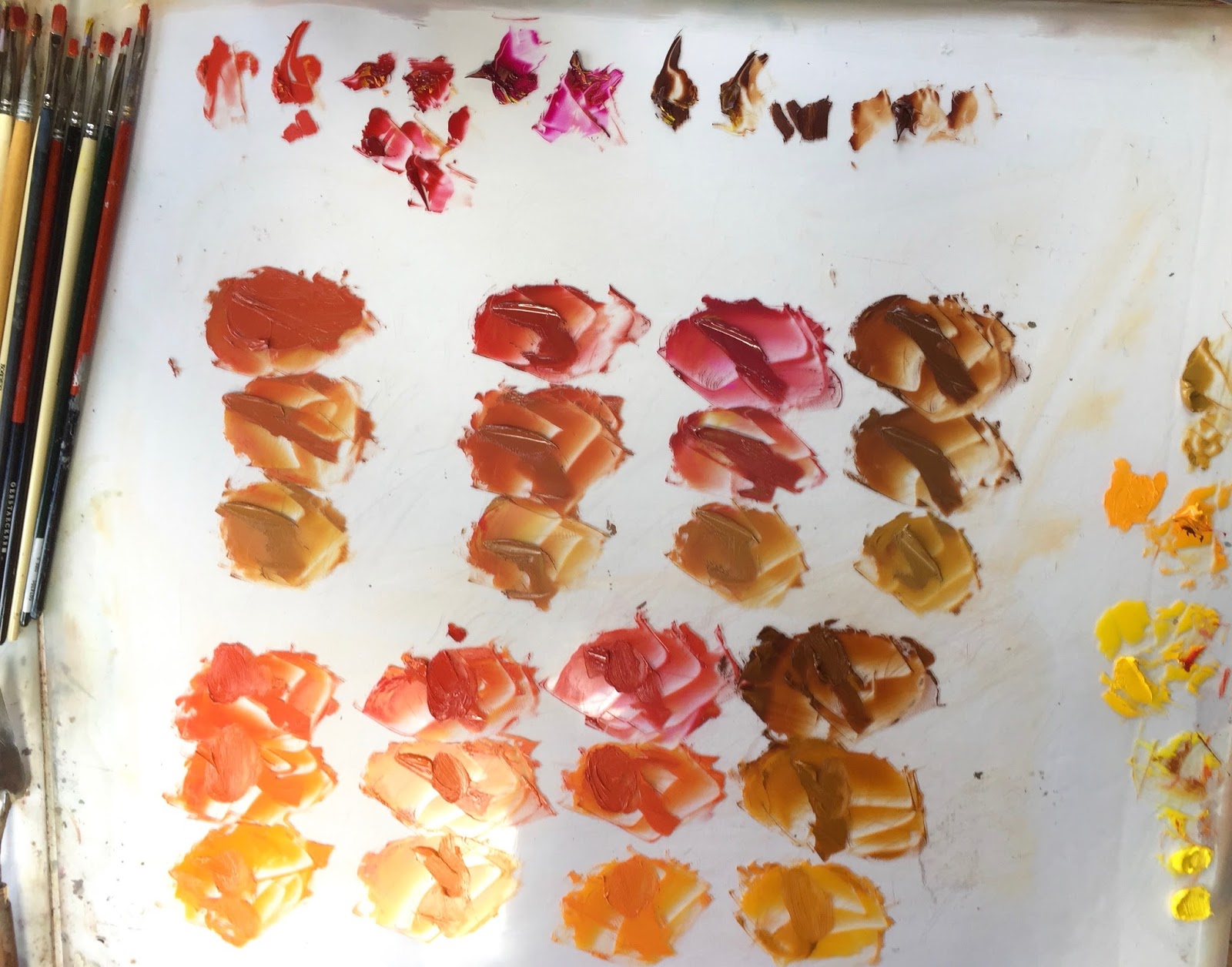 The above is my palette with 4 yellows and 4 reds all mixed together to create –