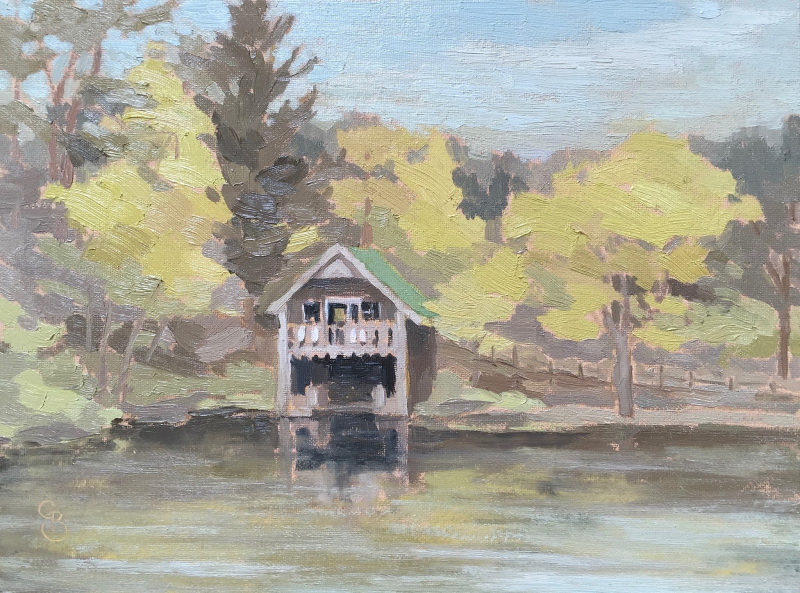 The water was a challenge, I’m pleased with the sky reflecting ripples. This was my most complex and biggest outside painting to date, progress!