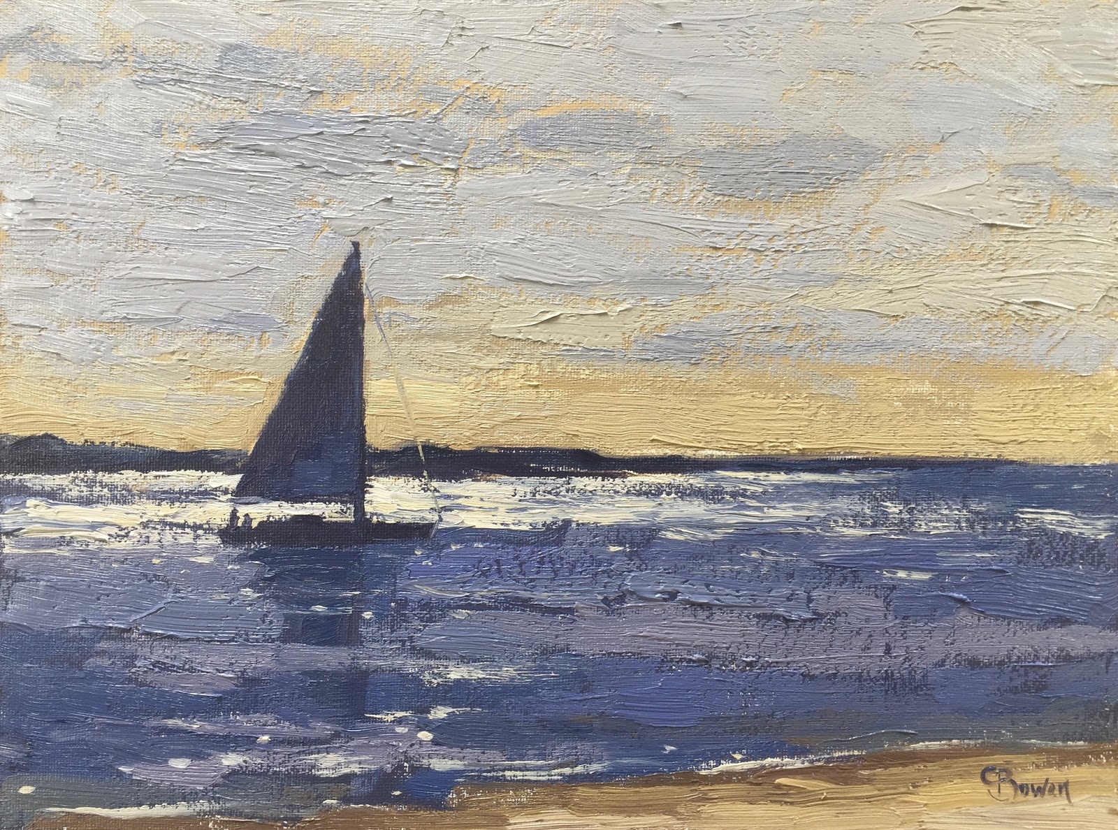 I enjoyed putting the light sparkle on the sea, when it was such a dark base it really showed up. Paying attention in getting the tones right of the sky, sea and sparlkle combo. The sparkle being the lightest in tone.