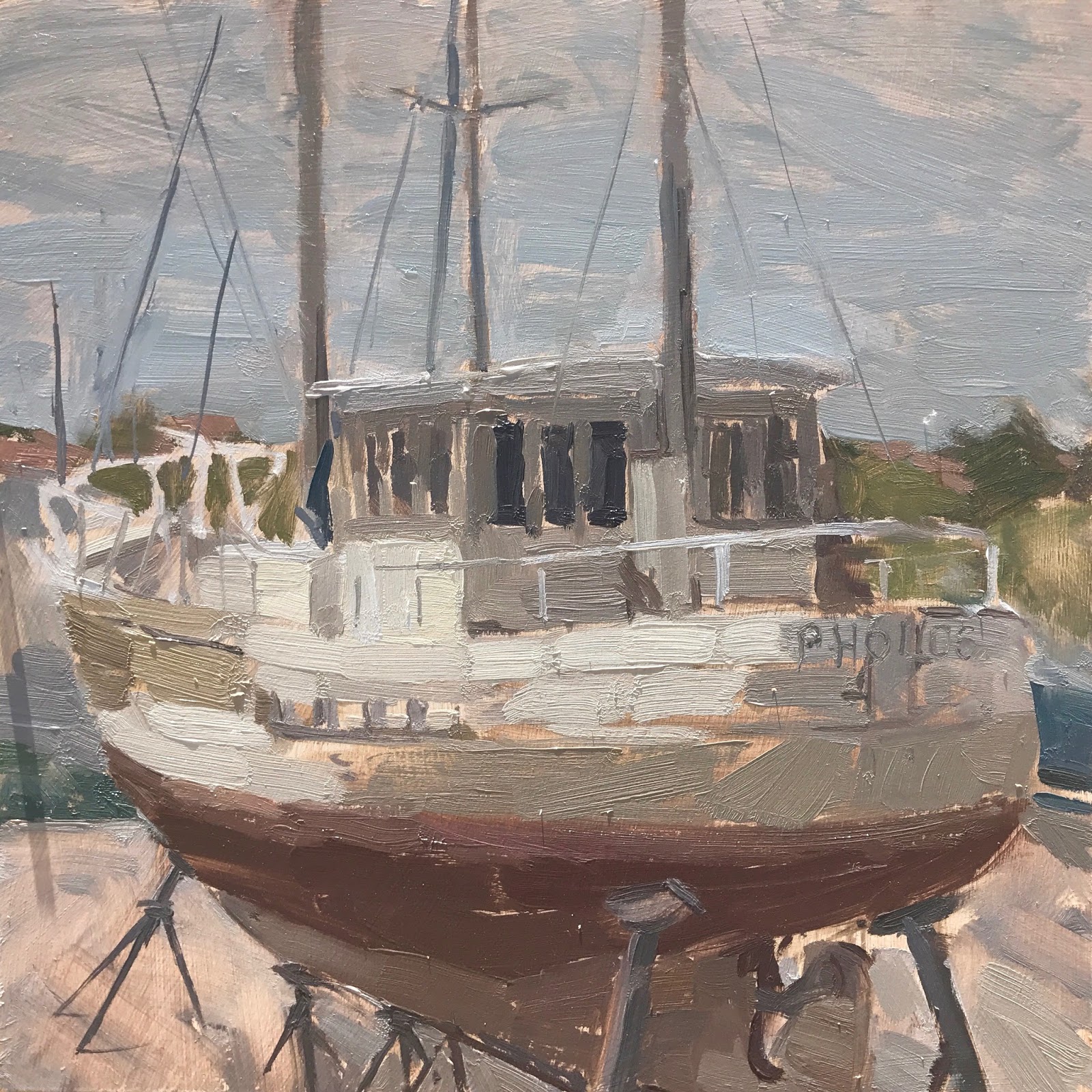 I heard from the other painters about a lovely old boat on blocks out of the water.
