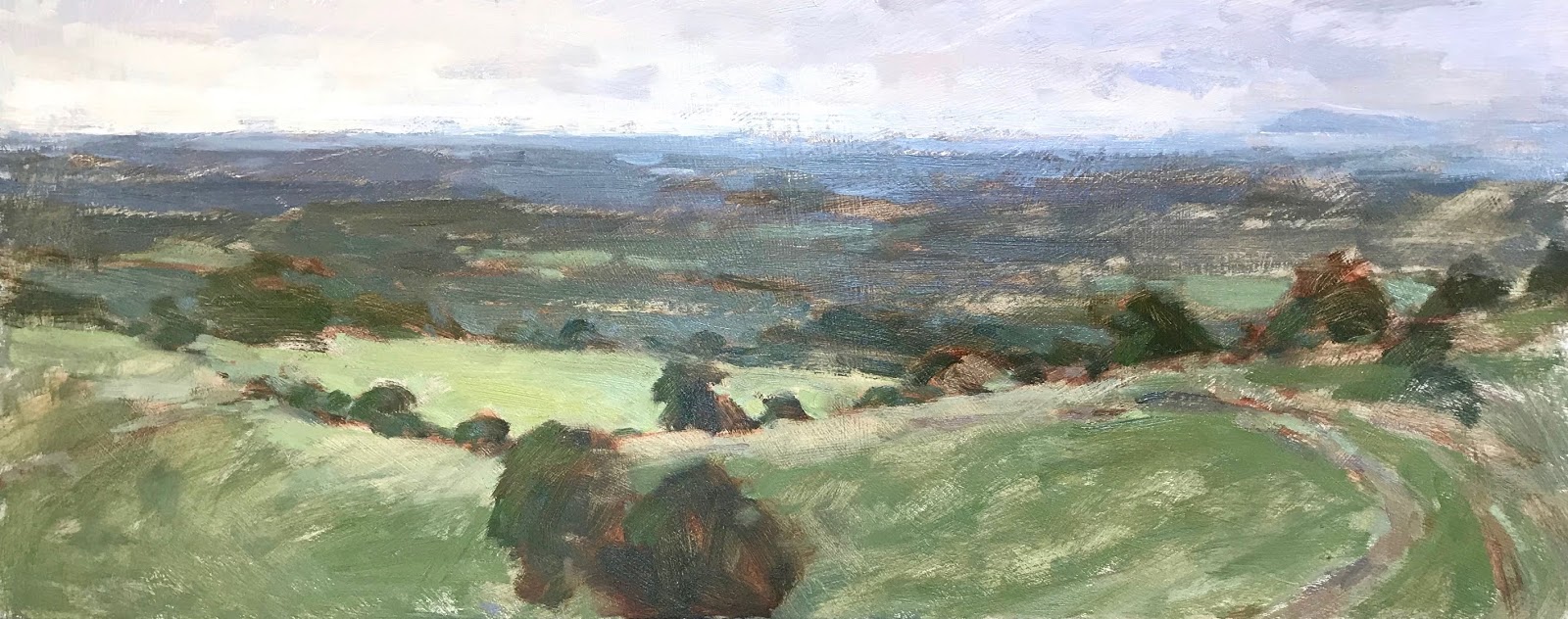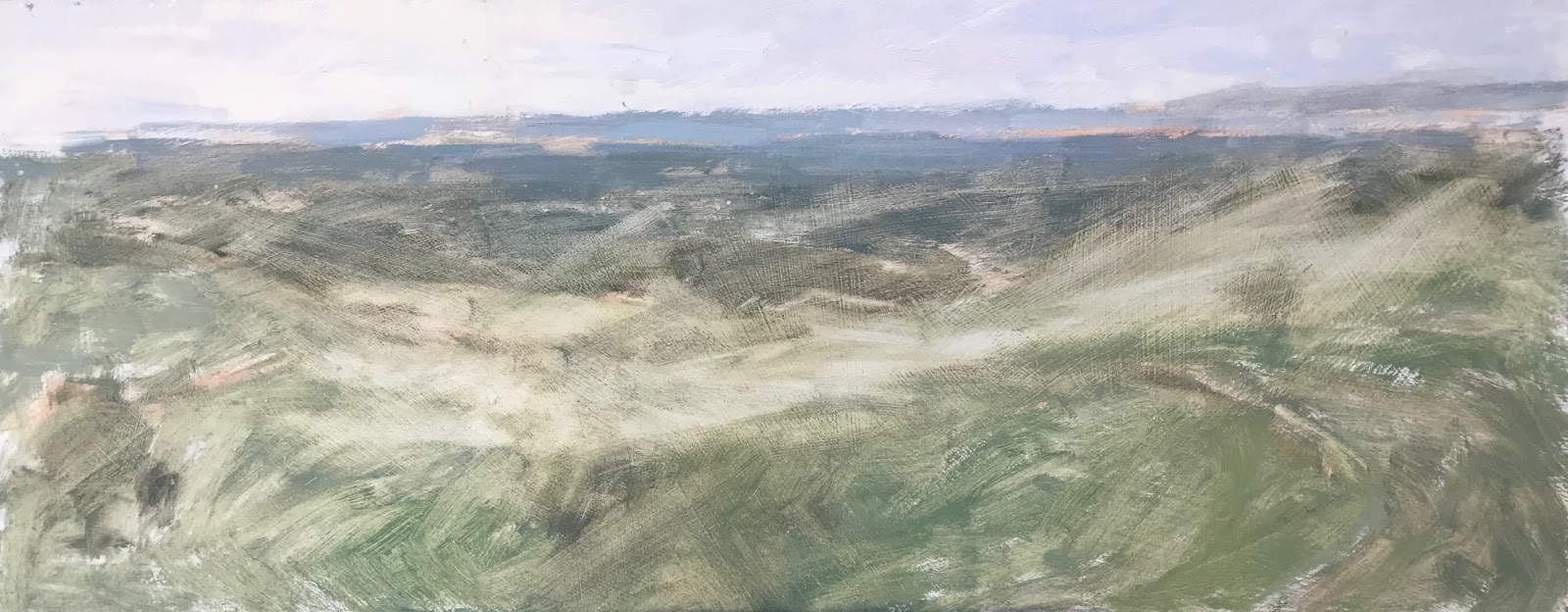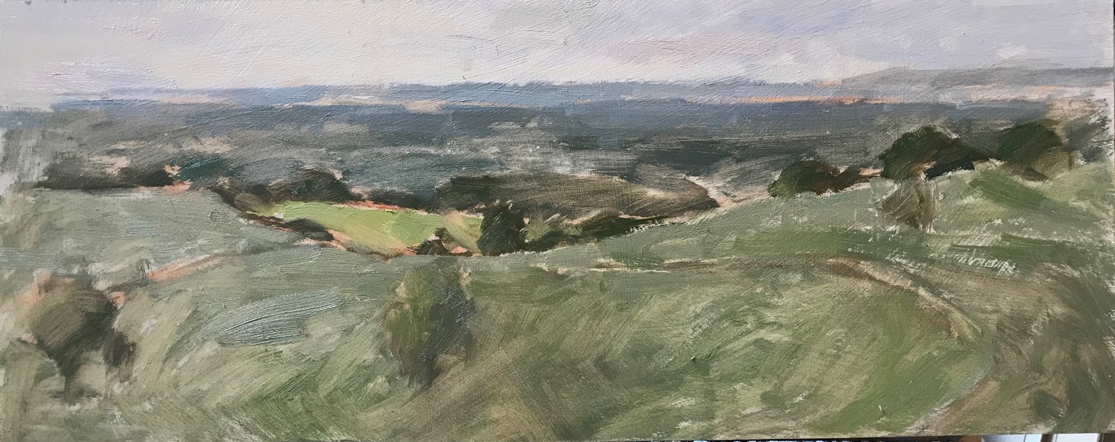 I got the painting home and wiped it back (below pic) straight away so it didn’t dry. The colour was left but no form, I repainted it the next day while it was fresh in my mind, helped I’d already done the same scene last August.