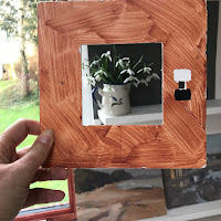 We covered a lot of ground from boards, gesso, equipment, my painting colours, colour mixing…viewfinder. Rosie really liked my viewfinder as I’d made a small hole so you can isolate colours and compare them to others in your scene.