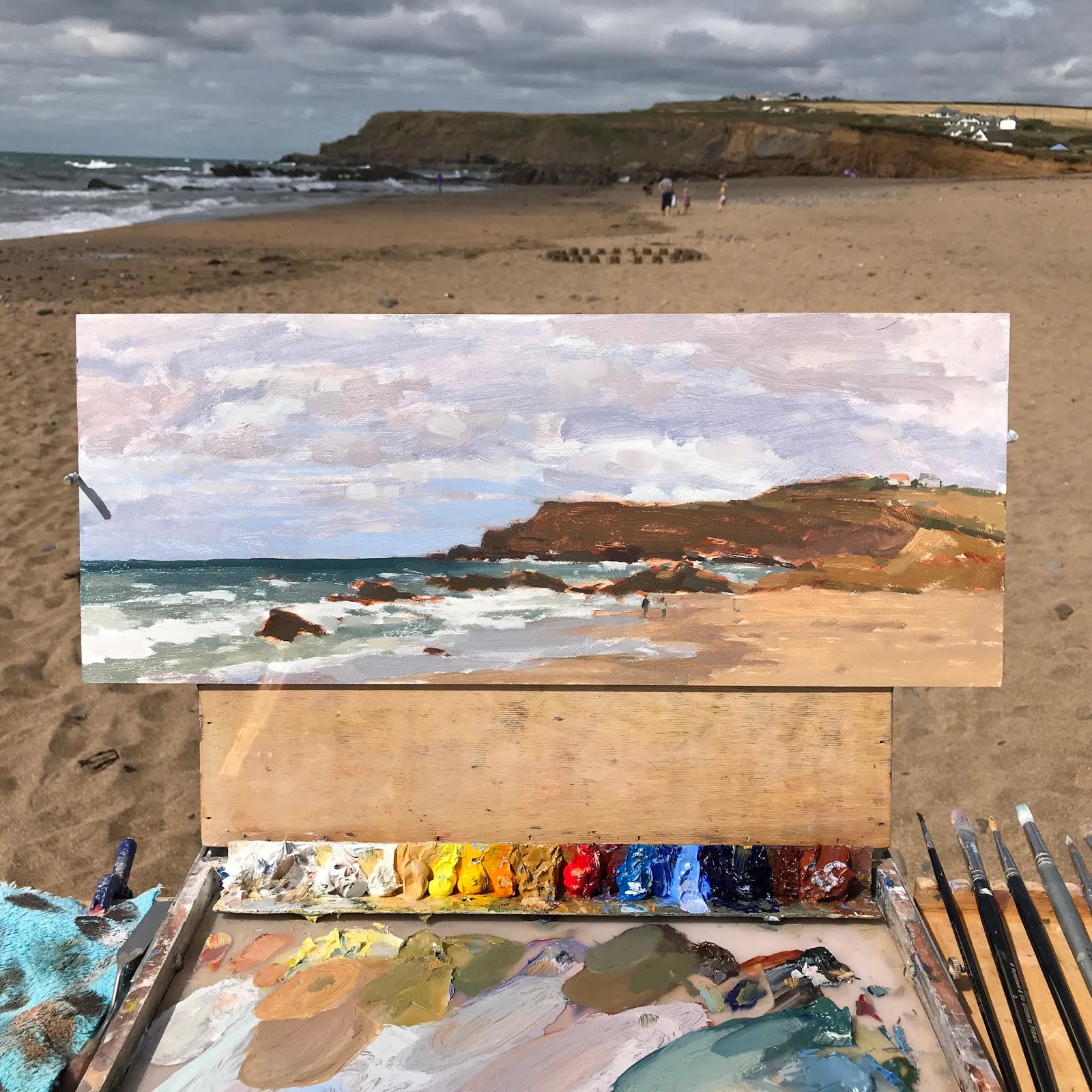 | Spot the ring of sandcastles, they were making them as I was painting, I decided not to include in my painting. |