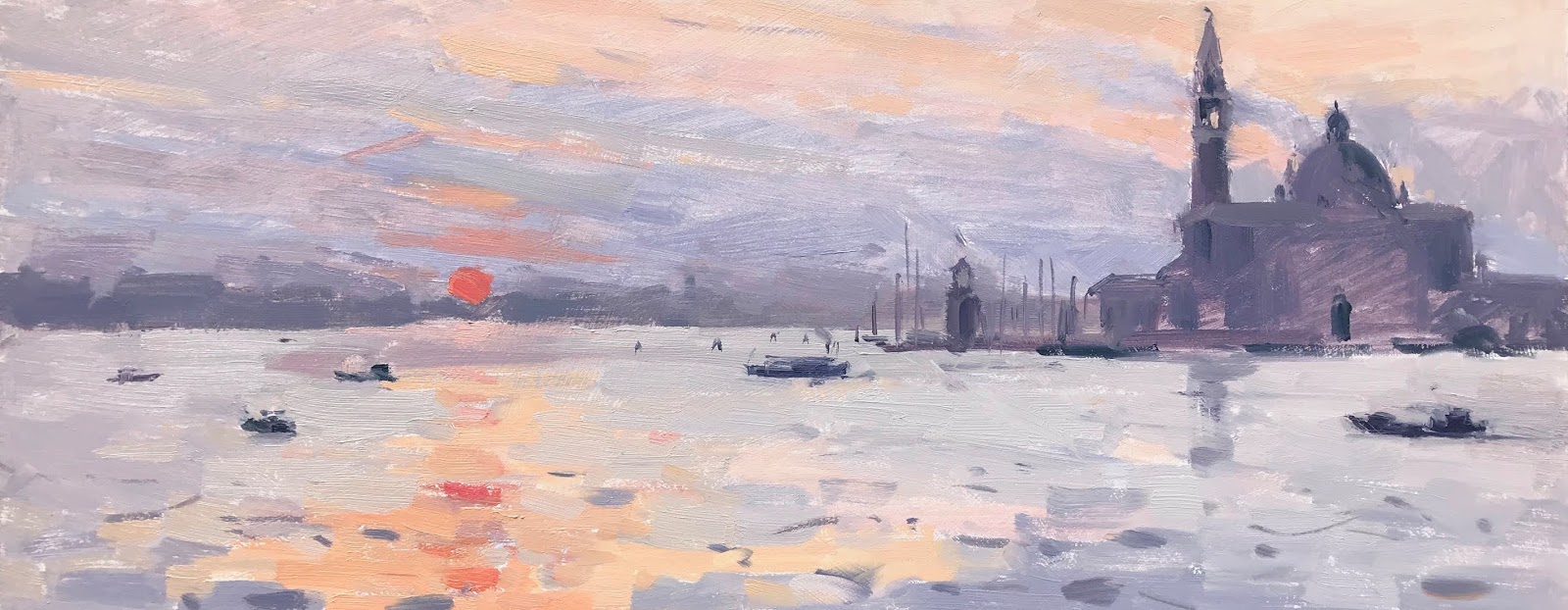 I did this one straight after the previous painting. The sun just popping up over the horizon.