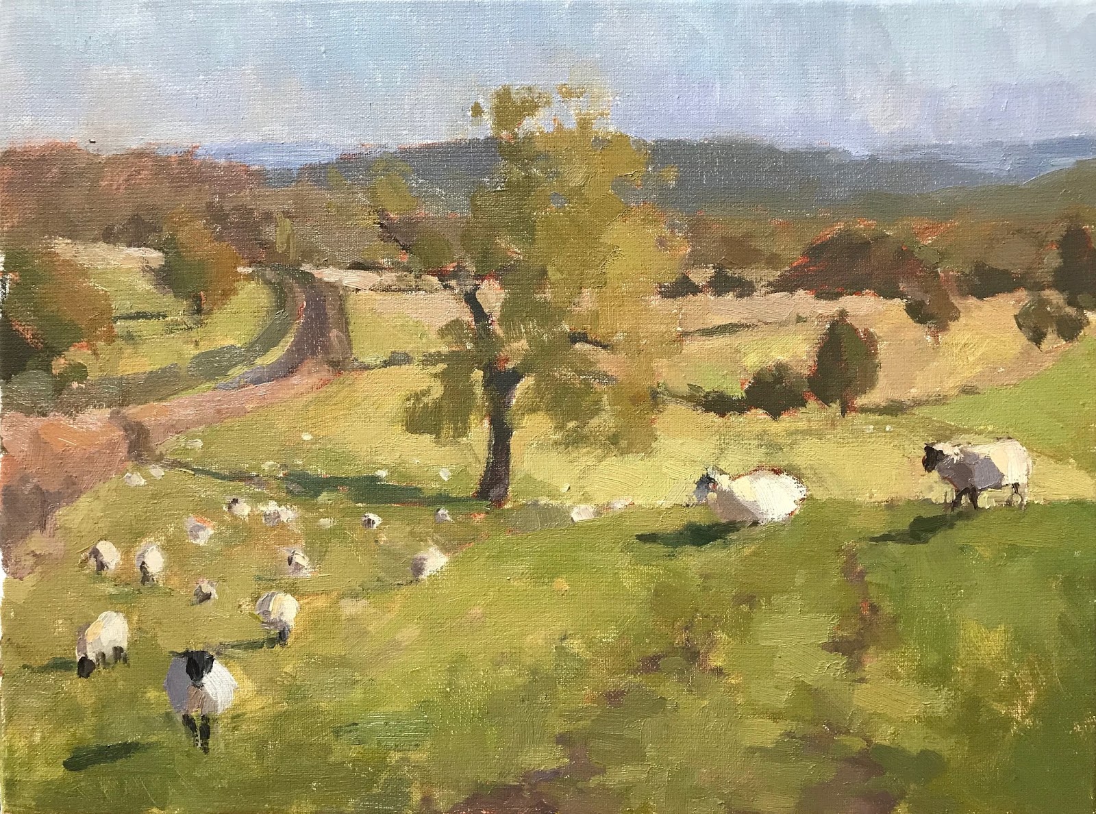 I painted the sheep as they were grazing and took some out when I got home to make a better composition.