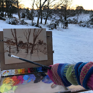 I arrived early to set up and start mixing colours. So I was ready to paint the shadows when the sun just came up over the trees. Cool blues compliment well with the orangey sky. Such an inspiring subject. I stayed on and did another I will post it tomorrow!