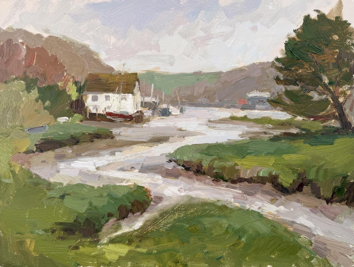 Soft greys and a quiet morning painting at Gweek estuary. A beautiful spot with the little white house motif.