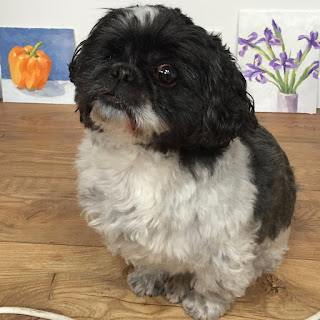 These flowers took me ages! So much so Matte, my dog asked for food and attention while I was taking the photo of the finished painting, see pic below.