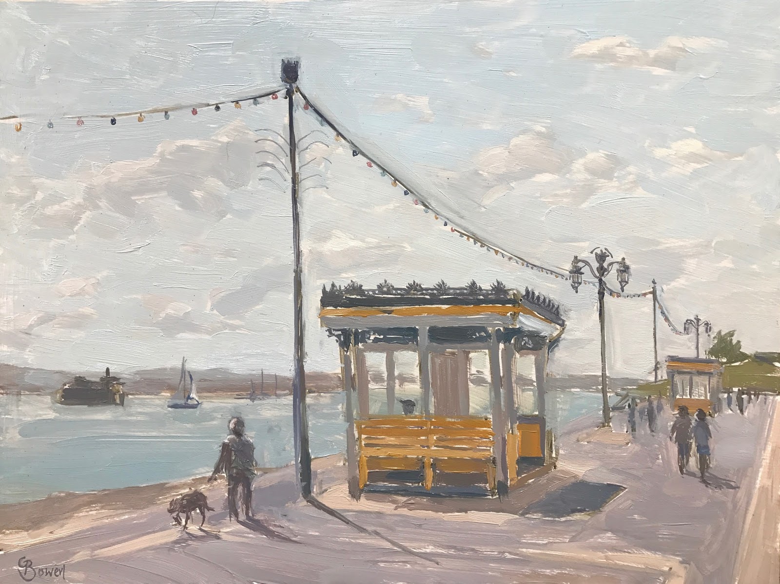 This painting of Southsea Promanade is a familiar scene to me, as I walked my dog and ran along here for 11 years. Yesterday was a bright, sunny day, packed with people, it had a lovely English seaside feel to it, with people eating fish and chips and seagulls hovering above.