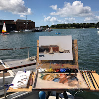 I painted at the end of a pontoon, a little hazadous because of the boarded gaps which my equipment could easily fall through.