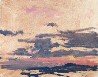 A painting I’d started just as the snowy weather arrived. It was so bitter exposed on the top of the South Downs, but a stunning sunset. I had been painting another but stopped and started this one, which turned out better as the colours are stronger and I honed in to the bit of the hill and sky I liked previous one I tired to put too much of the view in it!