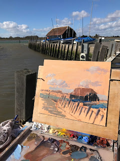 Yesterday was blowing a gale in Bosham Harbour but it was a bright wintery day and of course the best spot to paint was at the windiest point!