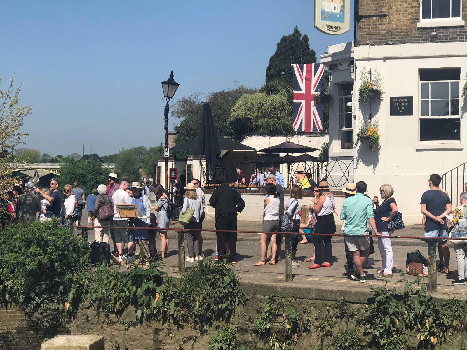 I was about 15 minutes through when people started gathering near me, I realised they were in a queue for a boat ride, the line snaked right next to me, I couldn’t even step back to see my painting! Quite unnerving having people watch the process from so close up! See pic below…