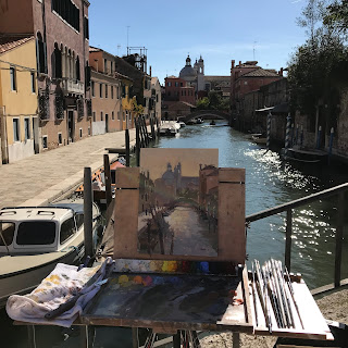 | Painting with artist Sally Balick on a quiet locals area in Dosoduro. |