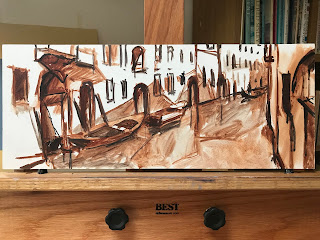 I drew this one out in Burnt Sienna plus another while in Venice but decided to paint them both in my studio so I could take more time do it in layers.